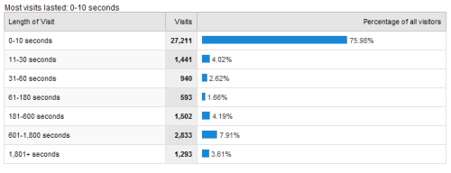 This new data made the "5 minute" average look really good! Over 75% of my visitors were spending 10 seconds or less on my page.